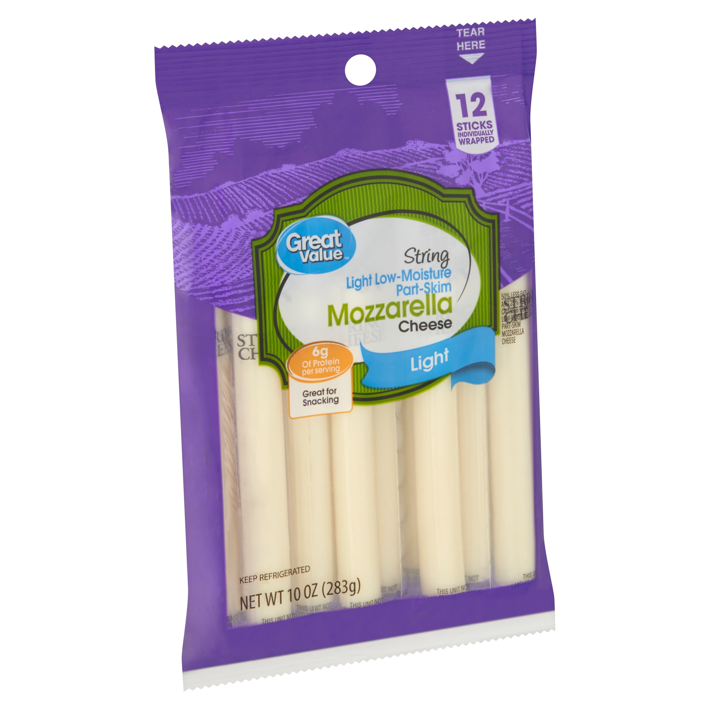 Great Value Gluten Free Light Low Moisture Part Skim Strings Mozzarella Cheese 10 Oz 12 Ct Walmart Com